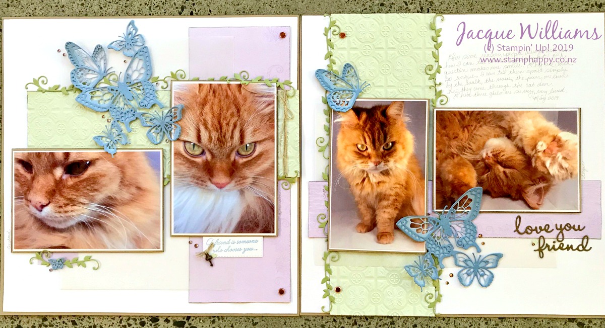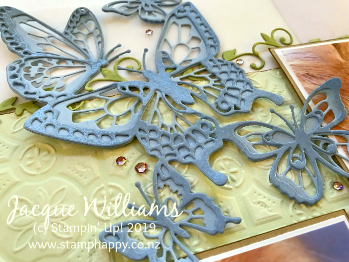 The main feature of this layout (and bundle) is this stunning butterfly spray! It’s two dies that are designed to either work alone or sit on top of each other for this beautiful two-toned, detailed effect. Sneak peek on this one – I’ve used the new Seaside Spray In-Colour coming in June! This is going to be an absolute favorite colour of mine.