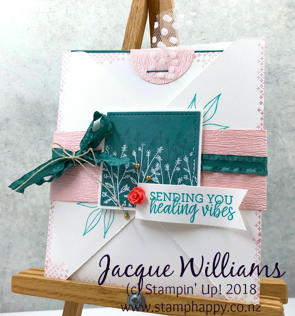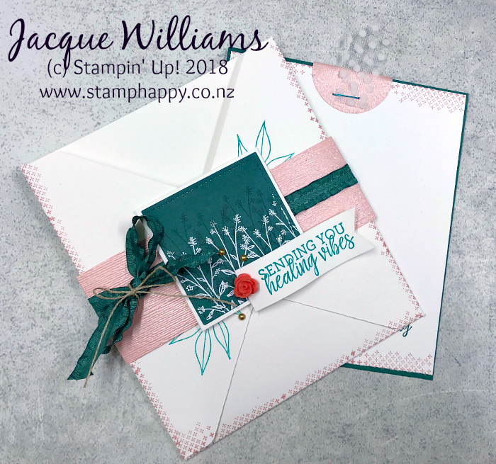 I’ve been playing around with the Healing Hugs stamp set, and noticed there weren’t a lot (any!) samples around using the smaller flowers in the set, so I wanted to give that a try. I also wanted to try out the Envelope Pocket card that I’ve seen around quite a bit: