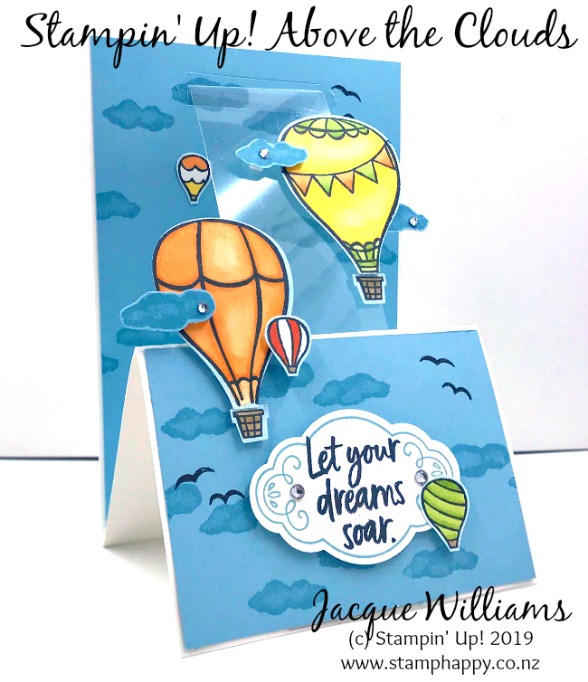 As you can see, the card neatly slots in an acetate strip, which then supports the floating hot air balloons. So great this stamp set also bundles with a punch!