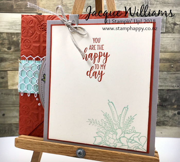 The Cajun Craze envelope pocket is made with the Envelope Punch board and then embossed with the Tin Tile Folder for an old world look.