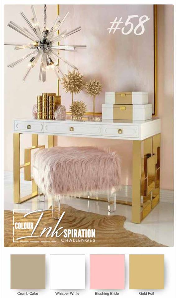Welcome to another blog hop and another colour challenge for you over the next two weeks! Challenge #58 features a sophisticated and soft colour palette with Blushing Bride, Crumb Cake, and Gold: