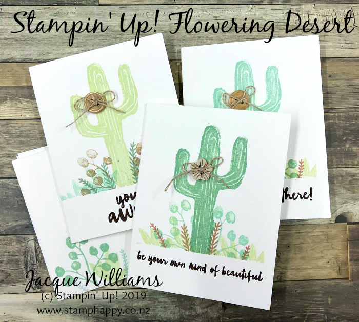 Happy Queen’s Birthday weekend! It’s also my middle daughter’s 19th birthday, so it’s been a special weekend at our house. Today’s share is another project with the discontinuing Flowering Desert stamp set – this time a set of soft, quick gift cards: