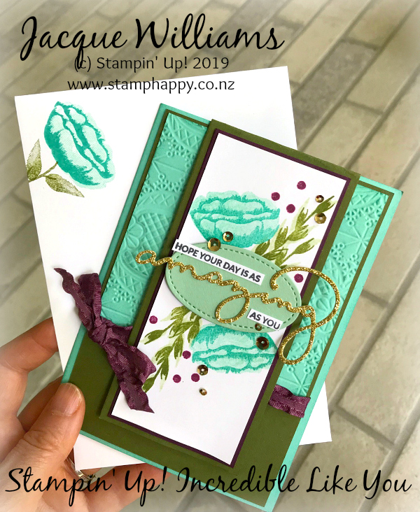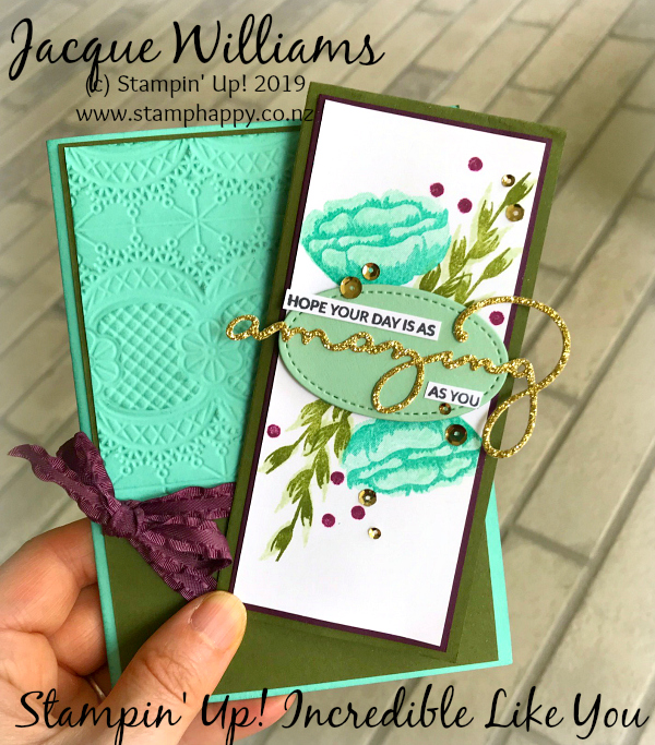 Sometimes you need a card that also has a small gift included or you just want something that bit different. Today’s share is an old favorite card that I’ve revamped with fresh colours and images. I chose to use the Incredible Like You stamp set paired with the Celebrate You dies: