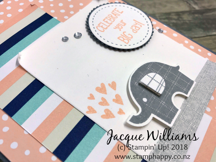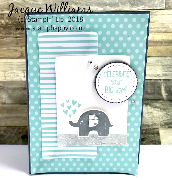 I don’t often do baby cards, but I couldn’t resist the CUTE Little Elephant bundle for a new mother or for a young child’s birthday. The front of this card is inspired by the talented Janneke De Jong: