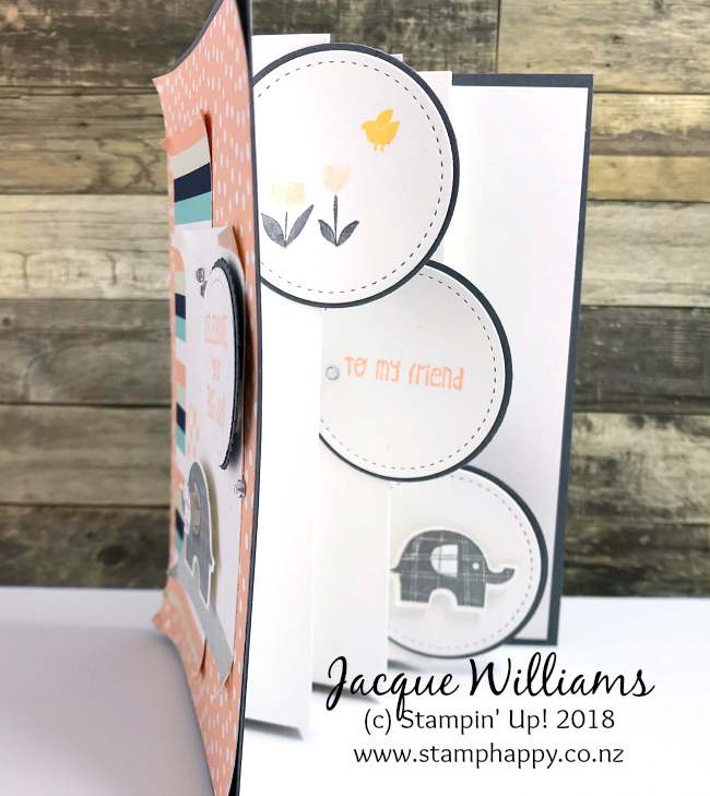 And inside, I’ve added a surprisingly easy pop up feature with an accordion fold and a few more of the images from the Little Elephant stamp set. I love this feature.
