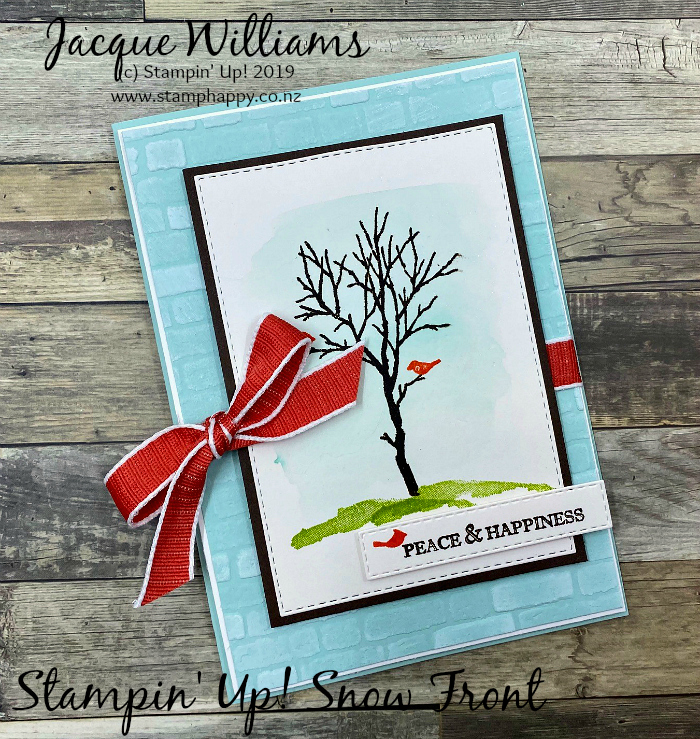 This card was inspired by wanting to use a stamp set they named after snow in a much more suitable way for the South Pacific. I think the tree and birds plus the vivid colours make for a nice Spring Christmas card.