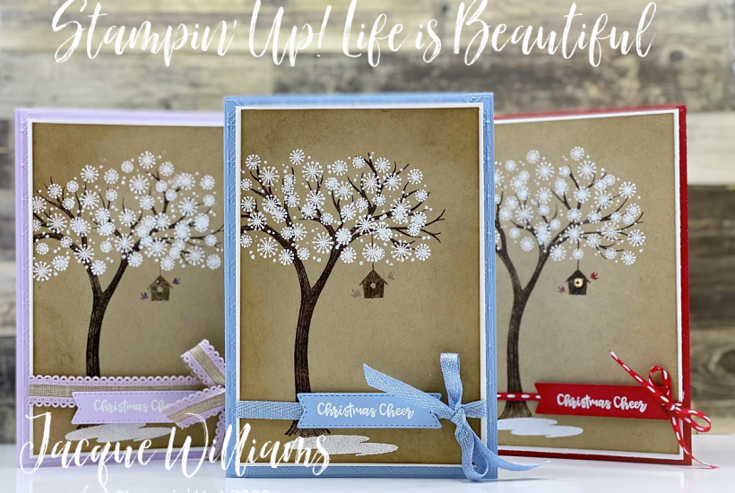 Make a beautiful tree card for any occasion (birthday, christmas, hello, sympathy) with the tree image in the Life is Beautiful stamp set. Pick your favorite color and go!