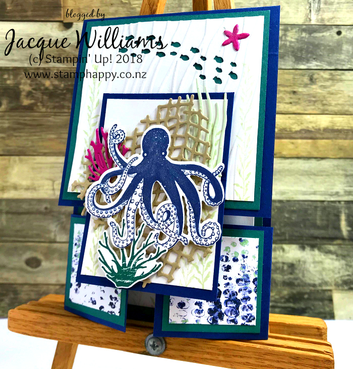 At our recent Stampin’ Up! stamp Extravaganza in Hamilton, Irene and Rayleen designed and taught this Dutch Fold Card with the Sea of Texture bundle: