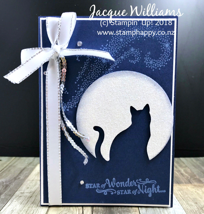 This card is deceptively simple – just punch out the cat from a Sparkle Glimmer Paper Circle and adhere to your card stamped card front. How easy is that??
