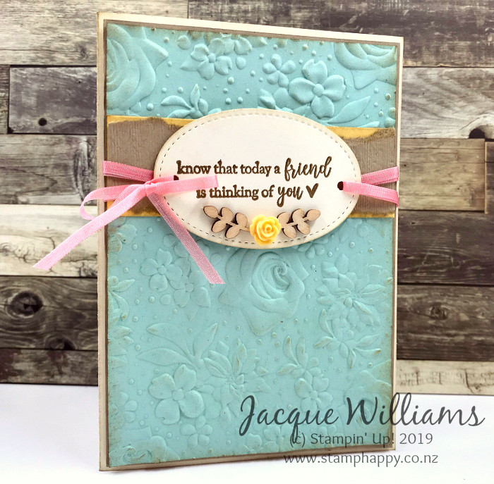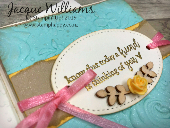 I wanted to keep the amazing embossing the focus, so kept the rest of the card reasonably simple with just a few layers and a gold embossed sentiment. These beautiful words are also from a SaleABration gift option, Part of My Story, that is also available as a free gift with your order. One doesn’t need to add a whole lot with such a beautiful background as this!